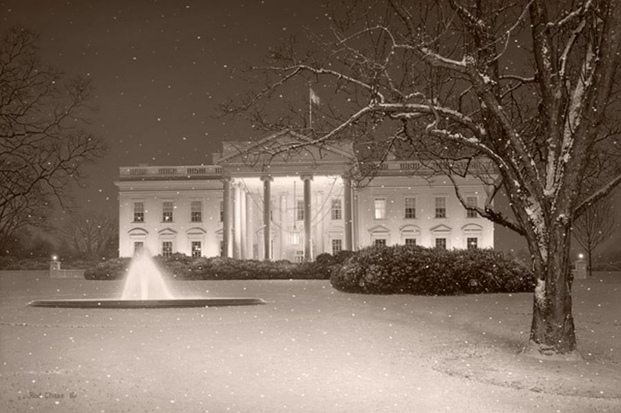 Sepia print of the White House in Washington D.C. by photorealist artist Rod Chase