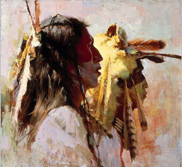 11 x 12 limited edition (only 550 available) signed & numbered giclee on canvas of two proud Native Americans by artist Howard Terpning