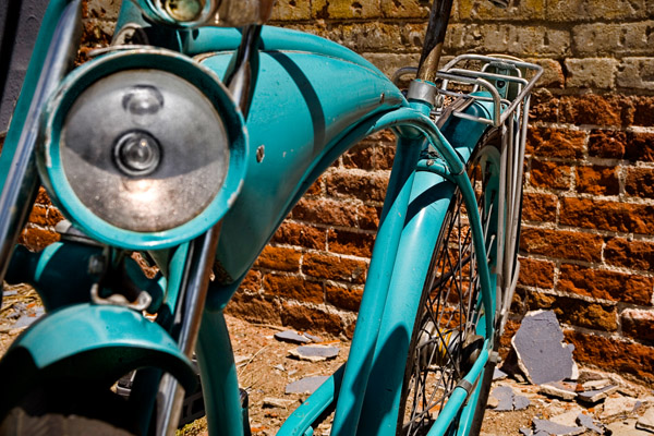 Headlight of a teal bicycle by photographer Todd Van Fleet